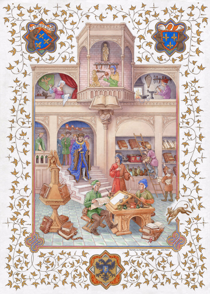 Het tweede paneel is gereed. Het stelt het (fictieve) bezoek voor van de hertog van Berry aan het atelier van de Gebroeders van Lymborch. Het ontwerp is opnieuw van de hand van John Rabou, deze keer in samenwerking met Rachelle Joy Slingeland.